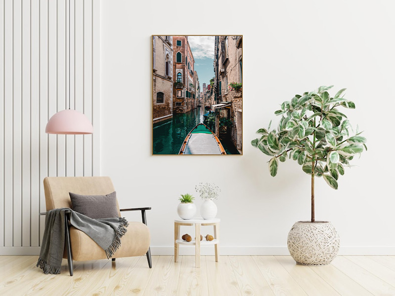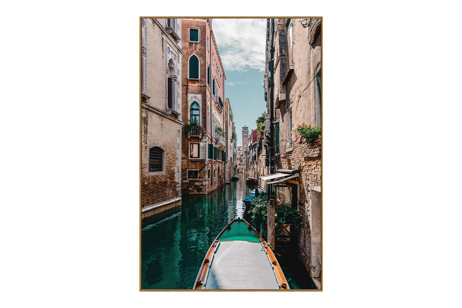 Dit prachtige, kleurrijke schilderij van Venetië brengt de zomer in huis! Mooi te combineren met ons andere schilderij van de prachtige kanalenstad in Italië. Dit schilderij shop je nu inclusief fotolijst. Al onze accessoires en meubels worden gratis bij jou thuis bezorgd door onze eigen bezorgdienst.
