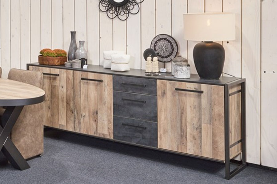 Dit prachtige dressoir van WOONENZO, in industriële stijl is chic, rustiek en elegant. Door de verschillende lades en vakken, is dit het ideale opbergmeubel. Maar dressoir Samir is niet alleen praktisch, het is ook een echte blikvanger. Met dit dressoir in natuurlijk parketlook en grijs staal, haal je een chic item in huis! Door de duurzaamheid, gaat dit meubel lang mee. Daarnaast is dressoir Samir uitgevoerd met softclose, wat betekent dat de deuren niet dicht kunnen slaan, maar dan ze langzaam sluiten. Shop nu snel online of in een van de woonwinkels! Ook geïnteresseerd in onze andere industriële meubels? Neem dan eens een kijkje bij onze industriele woonkamersSpecificaties