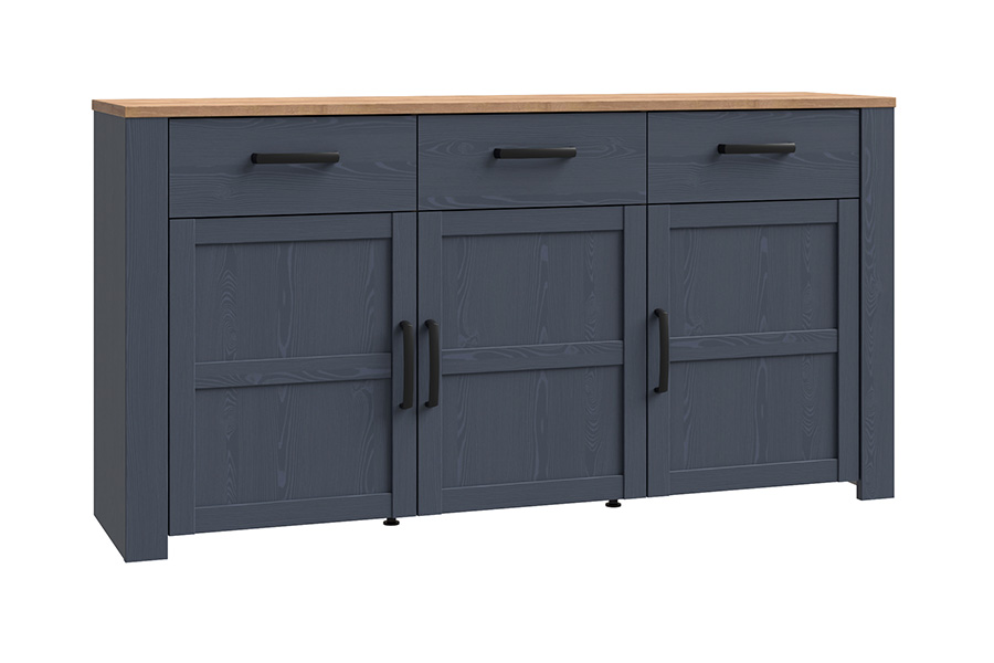 Dit prachtige dressoir is geschikt voor zowel een landelijk, modern als industrieel interieur. Dat komt door de combinatie van de kleuren blauwgrijs en eiken. De zwarte handvatten maken het geheel af.