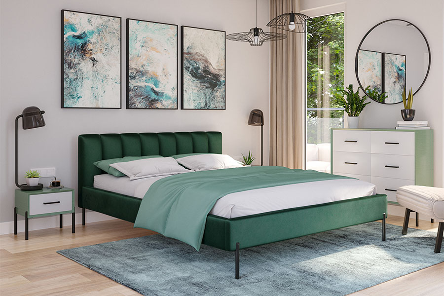 Een velvet bed zorgt voor een luxe uitstraling in jouw slaapkamer. Zeker in de opvallende kleur donkergroen. Het patroon op het hoofdbord geeft nog eens een extra chique look. Houd je van de sfeer van een hotel in jouw slaapkamer, dan is bed Milaan absoluut een musthave voor jou!De zwarte, metalen poten zijn makkelijk te combineren met verschillende soorten en kleuren vloeren. Het bed Milaan is online verkrijgbaar in diverse kleuren. Ga je voor opvallend, luxe of romantisch? Het bed Milaan is daarnaast ook verkrijgbaar in de afmetingen 180 cm en 140 cm. Maak jouw slaapkamer helemaal af met één van onze kledingkasten.