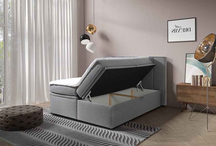Deze grijze boxspring met patroon op het hoofdbord is een elegante toevoeging aan jouw slaapkamer. Het model Chicago is uitgevoerd inclusief opbergbox en matras. Een van de voordelen van een grijs exemplaar is dat deze makkelijk te combineren is met allerlei kleuren. Je hoeft je dus geen zorgen te maken of jouw boxspring bij jouw kledingkast matcht. Grijs oogt chic, stoer en toch subtiel genoeg om er verschillende dekbedovertrekken mee te combineren.Wil je dit item liever in een andere kleur? Dan kan dat ook. Onze medewerkers in de verschillende filialen staan voor je klaar om je te helpen met jouw keuze.