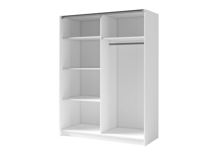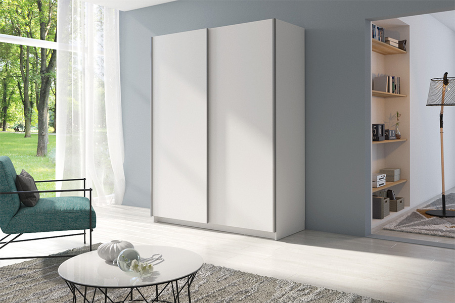 Deze subtiele schuifdeurkast is uitgevoerd in een net zo subtiele kleur. Deze kleine kast is ideaal voor mensen die niet te veel geld uit willen geven aan een kledingkast én voor degenen met een moderne, kleine slaapkamer. De witte kleur zorgt ervoor dat kledingkast Gose niet te opvallend is en voor veel rust zorgt. En dat is wat je nodig hebt in je slaapkamer. Door de schuifdeuren wordt dit de ideale kledingkast, omdat je jouw slaapkamermeubels vlak naast je bed of nachtkastje kunt plaatsen. De kast komt met een standaard indeling met legplanken. Deze goedkope kledingkast is leverbaar in andere afmetingen en met spiegel. Indien je kledingkast Gose liever met spiegel hebt, kijk dan hier.