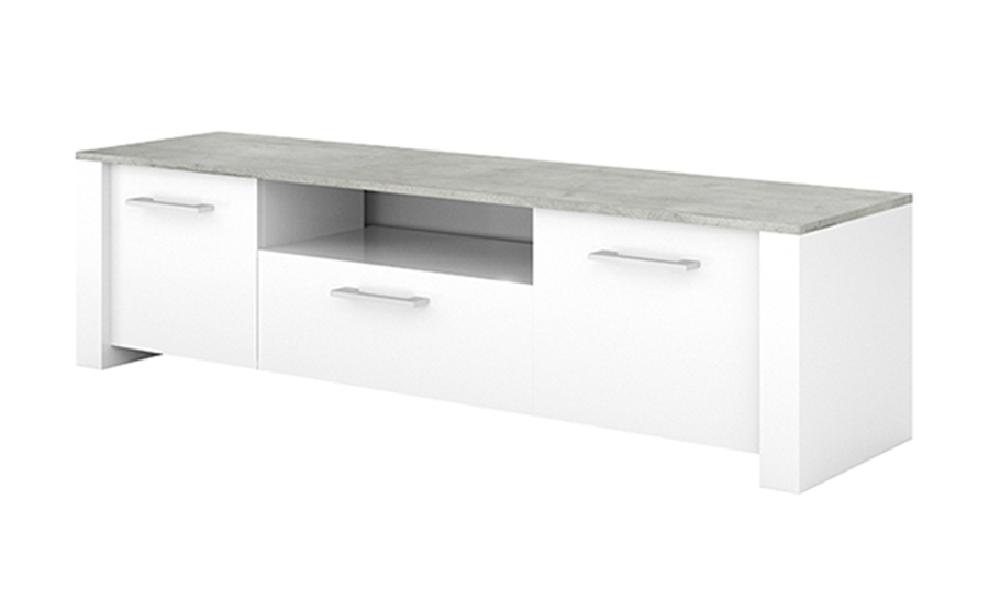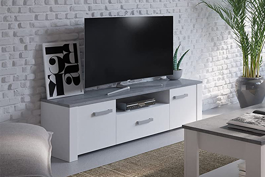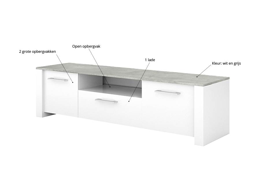 Wil je een wit tv-meubel en deze goedkoop aanschaffen? En niet te veel kwijt zijn? Een wit tv-meubel haalt het platteland naar jouw woonkamer en dat voor een mooie prijs. Het rustieke geeft meteen iets knus en gezelligs aan jouw woning. Wit tv-meubel Florida is gemaakt van spaanplaat en is uitgevoerd met twee deuren en een opbergvak in het midden. Je kunt dus veel apparatuur kwijt in dit meubel en ook de kabels kun je mooi wegwerken. Zo houd je jouw woonkamer opgeruimd en netjes. Tv meubel Florida is voorzien van grijze grepen. Leuk dit tv-meubel op met wat planten, want groen steekt mooi af bij wit en grijs, of een statement vaas. Leverbaar in de kleurencombinatie Pearl White en Woodcorn Grey. In de serie Florida zijn er meerdere meubels verkrijgbaar. Zelfs een complete woonkamer, met vier meubels die je woonkamer helemaal af maken.Waaronder wit tv-meubel Florida.